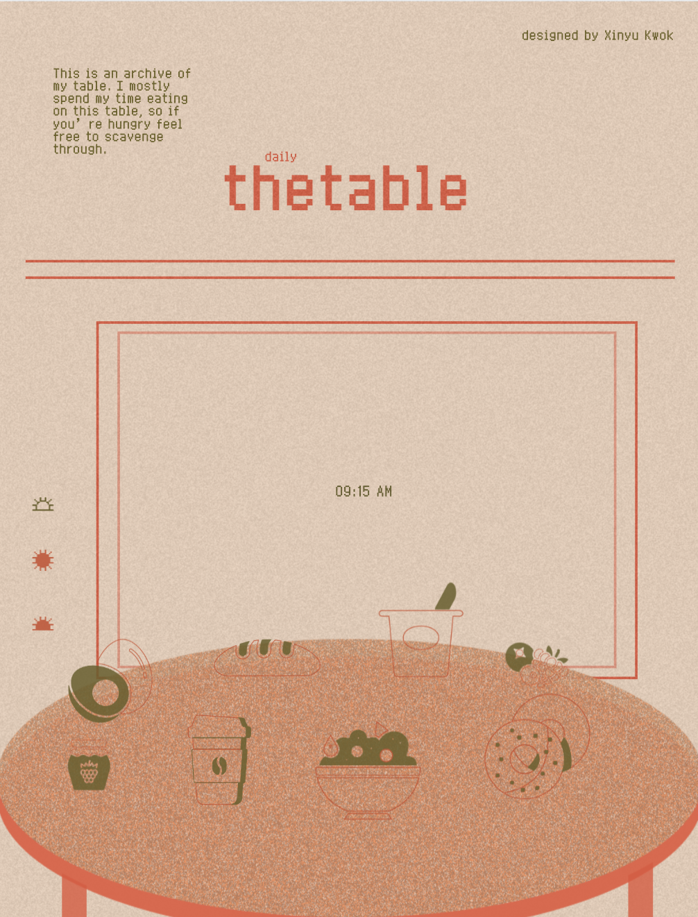 "Food Table" is Vanessa Kwok's multi-page website, offering a curated collection of her favorite dining table items. Users can filter items by time of day and access detailed descriptions. Vanessa emphasizes creating a welcoming atmosphere through colors, textures, and design elements, inviting users into her home ambiance.